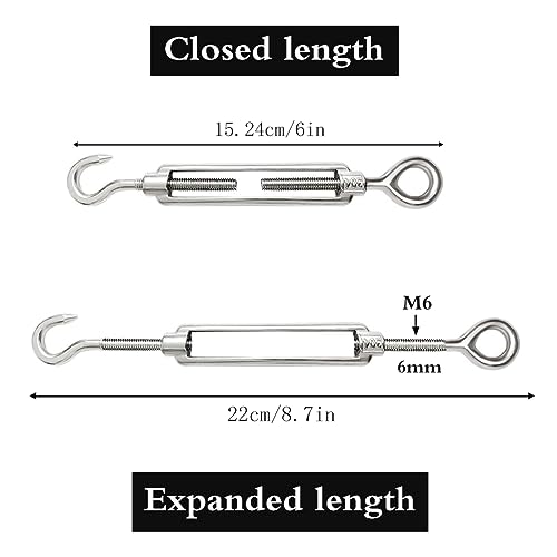 M6 Tenditore Acciaio Inox 304 Tenditore Filo Regolabile Tenditori Gancio e Occhiello per Cavi in Acciaio Tenditori per Funi (6 Pezzi)