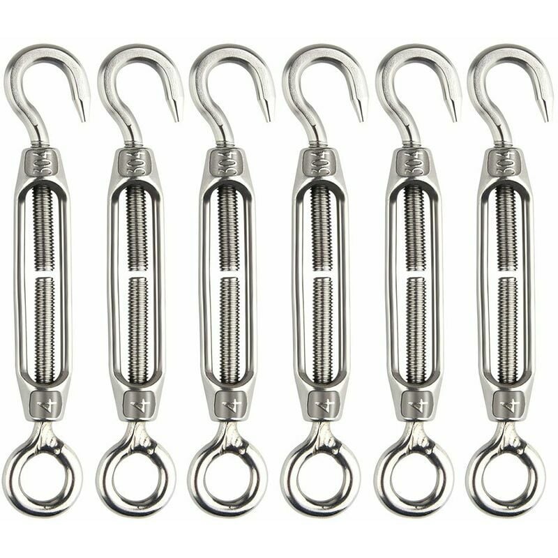 Tipo: gancio per tenditore M4 OC (gancio e occhiello) Confezione: 6 ganci per tenditore M4 Materiale: acciaio inossidabile 304, resistente all'acqua, alla ruggine e alla corrosione Applicazione: adatta per tendere la corda e regolare l'effetto elastico;