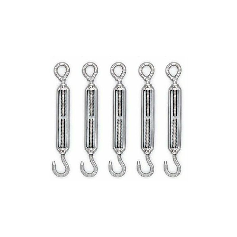 Br> Adatto per tendere la corda e regolare l'effetto elastico. Br> Adatto: perfetto per uso interno ed esterno Specifiche: Peso: 210 g Materiale: acciaio inossidabile 304 Corsa libera: 43 mm Applicazione: adatto per tendere la corda e regolare l'effetto elastico Confezione: 5 ganci M5 Nota: il colore dell'articolo reale può variare leggermente a causa della fotografia e il tuo computer