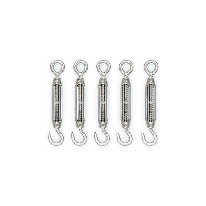 Materiale: realizzato in acciaio inossidabile 304 di alta qualità, antiruggine e durevole. Dimensioni: M4 Contenuto della confezione: 5 ganci tendifilo tenditore. Ampia applicazione: ideale per regolare la tensione o la lunghezza di cavi, funi, tiranti e altri sistemi di tensionamento. Ampiamente applicato per usi interni ed esterni. Facile da usare: basta ruotarlo per regolare la tensione quando lo si utilizza nel corpo di cavi per stendibiancheria, catena e parapetto o qualsiasi altra applicazione.