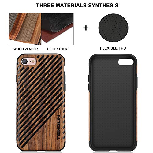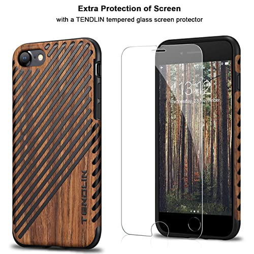 TENDLIN Cover Compatibile con iPhone SE 2022/iPhone SE 2020/iPhone 7/iPhone 8 Grano di Legno con Pelle e TPU Silicone Hybrid Custodia per iPhone SE 2022/2020 e iPhone 7/8 (Legno di Sandalo Rosso)