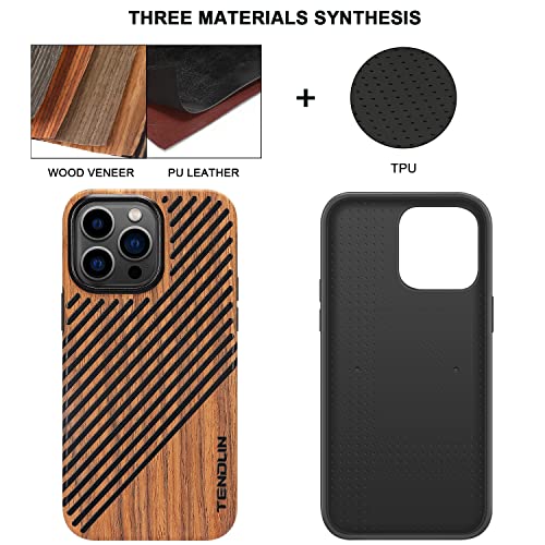 TENDLIN Cover Compatibile con iPhone 14 Pro Max Custodia in Legno e Pelle Compatibile con iPhone 14 Pro Max (Legno & Pelle)