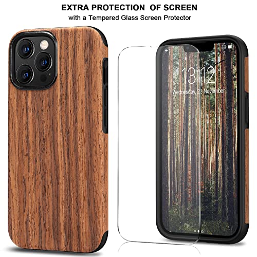 TENDLIN Cover Compatibile con iPhone 13 Pro Max Custodia in Legno e Silicone Compatibile con iPhone 13 Pro Max (Legno di Sandalo Rosso)