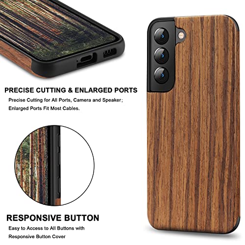 Preservare il design di Galaxy S22+, il profilo sottile, non aumentano il volume del dispositivo senza sacrificare la protezione, corpo sottile appena sufficiente a proteggere e nulla di più; Design unico offre un buon grippaggio e la comodità con il suo rivesimento del grano di legno vero