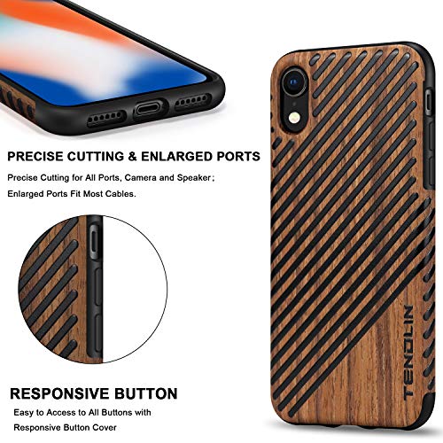 TENDLIN Cover iPhone XR Grano di Legno con Pelle e TPU Silicone Hybrid Cover per iPhone XR (Legno di Sandalo Rosso & Pelle)