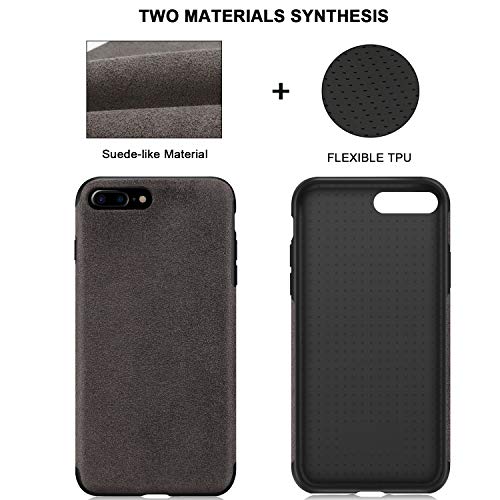 TENDLIN Cover iPhone 8 Plus/Cover iPhone 7 Plus Fatta di Materiale Alcantara Custodia Hybrid in Pelle Compatibile con iPhone 7 Plus e iPhone 8 Plus (Marrone)