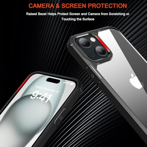Progettato per cover per iPhone 15: Dorso rigido trasparente e paraurti in TPU morbido;