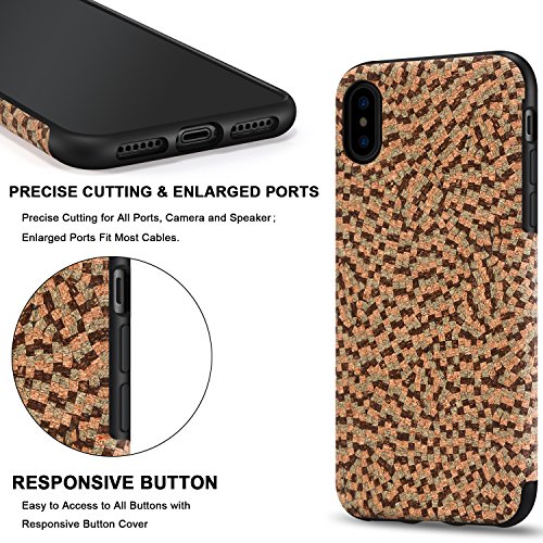 TENDLIN Cover iPhone X/Cover iPhone XS Materiale Legno Sughero e TPU Silicone Hybrid Cover per iPhone XS/iPhone X (Colore Scuro)