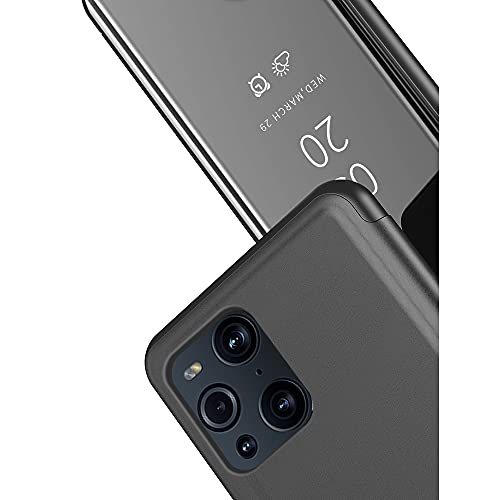 TenDll Cover per Oppo Find X3 PRO, Flip Custodia Cover con Funzione Kickstand Ultra-Sottile Specchio Traslucido Cover Smart Cover, Flip Cover PU Silicone Custodie -Blu