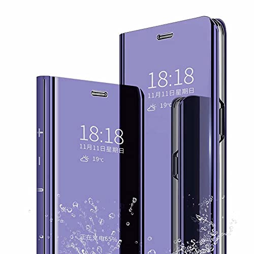 TenDll Cover per Oppo A17, Flip Custodia Cover con Funzione Kickstand Ultra-Sottile Specchio Traslucido Cover Smart Cover, flip cover PU silicone Custodie -porpora