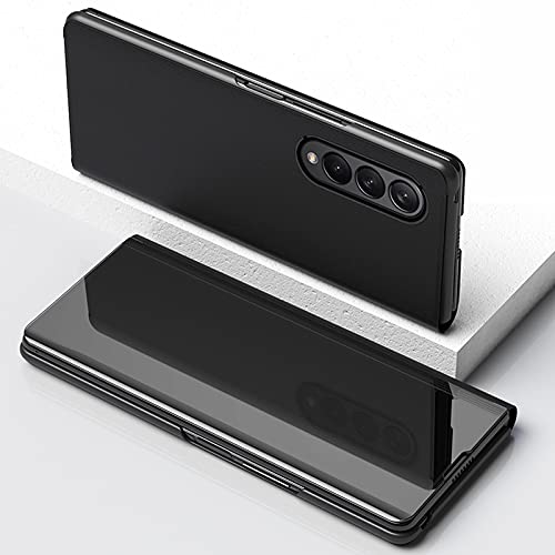 TenDll Cover per Samsung Galaxy Z Fold 3 5G, Flip Custodia Cover con Funzione Kickstand Ultra-Sottile Specchio Traslucido Cover Smart Cover, Flip Cover PU Silicone Custodie -Nero