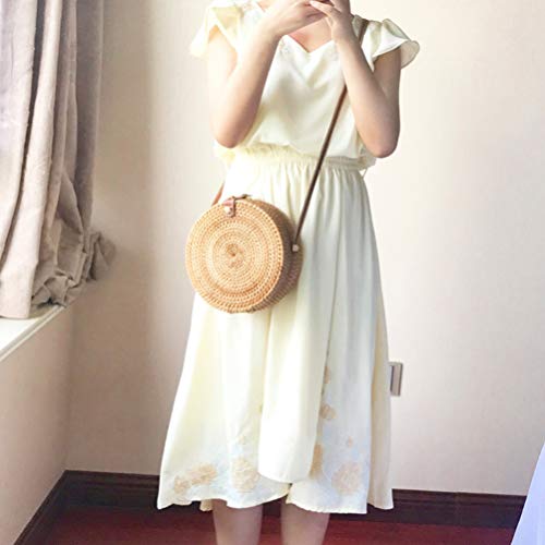 TENDYCOCO Borsa a Tracolla per Donna Borse E Borsette in Paglia Borsa in Rattan Tondo Cerchio in Vimini