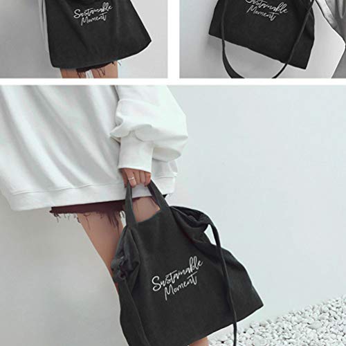 TENDYCOCO borsa a tracolla in velluto a coste ricamata moda borsa a tracolla tote di grande capacità borsa shopping durevole borsa a mano con manico - nera