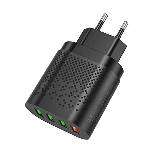 Teng hong hui Telefono Travel Charger 4 Porte Caricatore del Telefono di Ricarica Rapida Tabella Phone Adapter USB Power Adapter 5V 3A, Nero, EU Plug