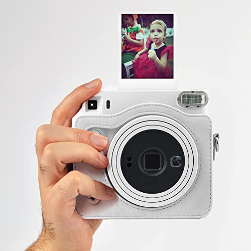 Tenglang Borsa protettiva per fotocamera per FUJIFILM Instax SQUARE SQ1, in pelle vintage PU con tracolla Custodia per il trasporto Custodia protettiva per fotocamera sq1 (bianco), circa 14x14x16,5 cm