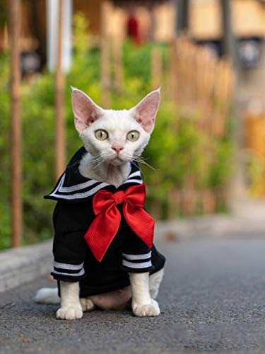 TENGTUD Vestiti per Gatti Senza peli, Sphynx/Devon Gatto Nero Gatto-XS_Piedi Corti