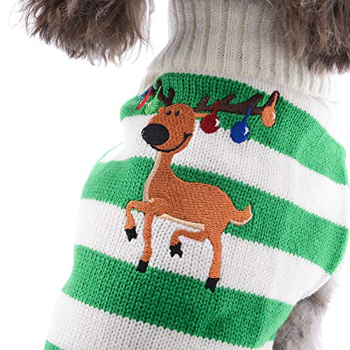 TENGZHI - Maglione natalizio a righe con renna e renna, lavorato a maglia, per cani e gatti