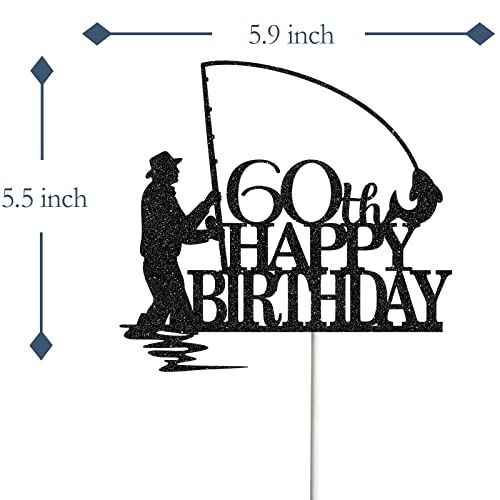 Tenhaisi Decorazione per torta per 60° compleanno con glitter neri, decorazioni per feste di 60° compleanno, decorazione per torta di pesca, forniture per 60° compleanno pescatore