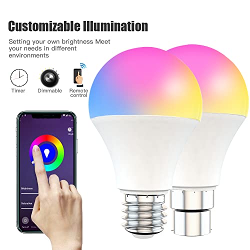 TENKY E26 WiFi Smart Light Bulb, Dimmable RGB+CCT Smart Light Bulb, Voice Control, Colour Changing, 9W 850Lm, Work With Alexa Google Home