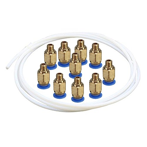 Tenlacum 10 PC4-M6 Raccordo Pneumatico Diritto Push to Connect+2 Metri Bowden Tubo PTFE Teflon per 1,75 mm Filamento Stampante 3D