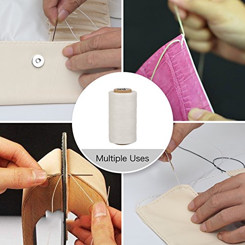 Tenn Well - Filo cerato, lunghezza 300 m, spessore 150 D 1 mm, filo cerato per cucire a mano, con aghi, per progetti fai da te in pelle White