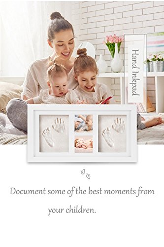 TENQUAN Kit con Cornice in Legno Per Impronte di Neonati, per Piedi e Mani, con 6 confezioni di Cornici in Argilla, regalo per neonata femmina e regali neonato maschio-Regali Battesimo Bimbo
