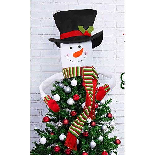 Tenrany Home Topper Albero di Pupazzo di Neve Albero di Natale, Puntale per Albero di Natale Snowman Top Hat Hugger per Natalizie per Albero Decorazioni (Verde)