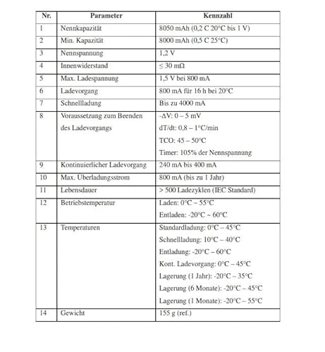 Tipo di celle della batteria: NiMH, 8000 mAh.