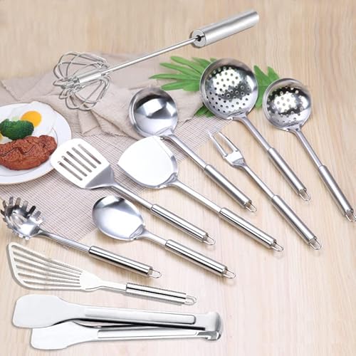 Tenta Kitchen 11PCS Set di utensili da cucina in acciaio inox Set di utensili da cucina pentole Utensili da cucina Strumenti di supporto acciaio inossidabile spatola Frusta Spaghetti Server Mestolo