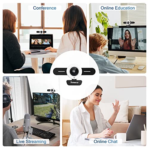 【Webcam con Microfono】Doppio microfono stereo incorporato, riduzione automatica del rumore e funzioni di isolamento acustico, lpuò captare 360° di suono entro un raggio di 4M,la videocamera è la scelta migliore per le videoconferenze che riproducono chiaramente il suono in ambienti rumorosi.