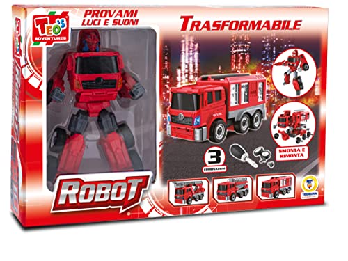Teorema 66944 - Robot Trasformabile in Camion Antincendio, 3 Combinazioni, con Luci e Suoni, Smontabile e Rimontabile