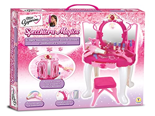 Teorema 67040 - Specchiera per bambina Apribile con Scettro Magico, incluso un Asciugacapelli funzionante, trucchi, gioielli, accessori, con Luci e Suoni, Amplificatore per Musica