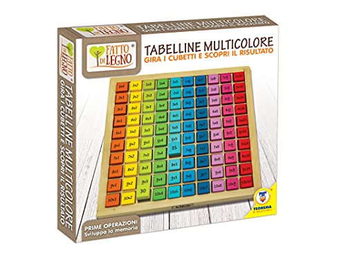 Teorema Giocattoli- Tabelline in Legno per Bambini, 20 x 20 cm, Arcobaleno, 40570