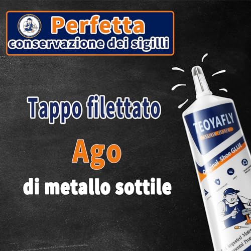 TEOYAFLY: Colla per scarpe ad alte prestazioni - Asciugatura lenta, adesione estremamente forte, impermeabilità eccezionale - Ideale per riparare scarpe da corsa, stivali, scarpe di pelle - 110 ml.