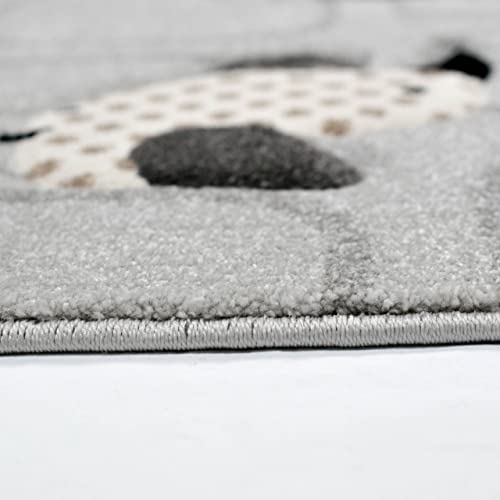 Teppich-Traum Moderno Tappeto per la cameretta dei Bambini Animali dello Zoo Leone Uccelli Elefante Giraffa Grigio Marrone Crema Größe 200 x 290 cm