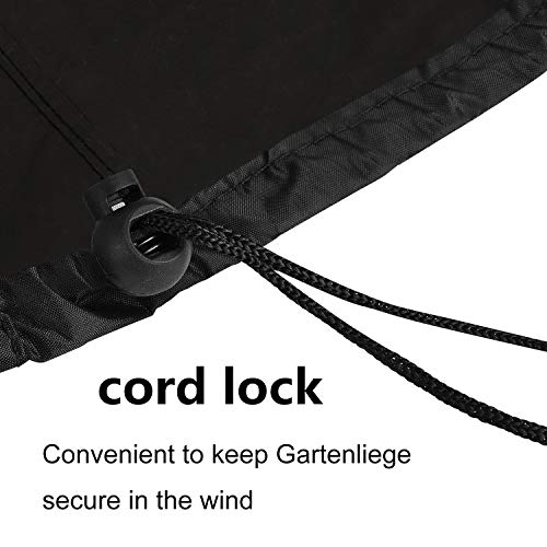 Resistenza al vento: c'è un cordoncino regolabile che garantisce una tenuta sicura. La custodia per sedia a sdraio non viene soffiata via dal vento.