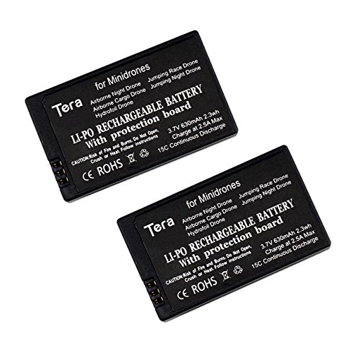 Tera 2*Batteria 3.7v 630mAh 2.3wh per Parrot Minidrones Airbone Night/Cargo Drone, Jumping Race/Night Drone, Hydrofoil Drone