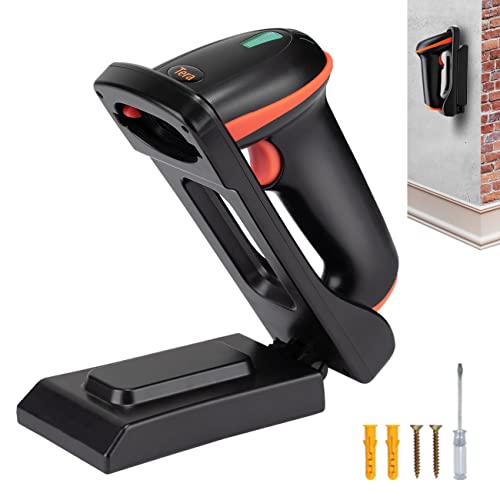 Tera Scanner di codici a barre 2D con supporto pieghevole regolabile e base di ricarica, montaggio a parete 2.4G Wireless & USB 2.0 Wired QR Code Reader con avviso di vibrazione, D5100-CR