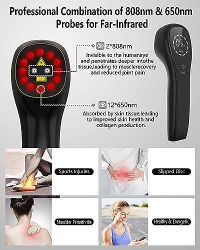 KTS Terapia a Luce Rossa,(12 x 650 nm&2 x 808 nm) la Sonda della Lampada Infrarossi Aiuta a Migliorare la Circolazione/Eliminare la Stasi, Antinfiammatorio/Dolorifico,a Ripristinare i Tessuti Molli