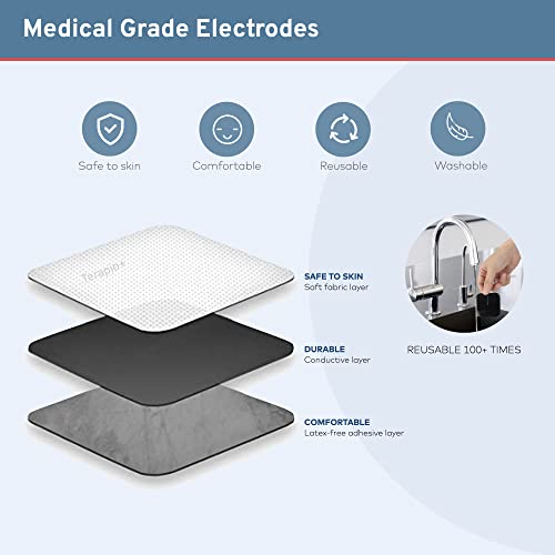 TERAPIO 8x Elettrodi cablati di ricambio. Compatibile con TERAPIO Smart TENS. Riutilizzabili. 4x Quadrato (5x5cm) e 4x Rettangolo (10x5cm)