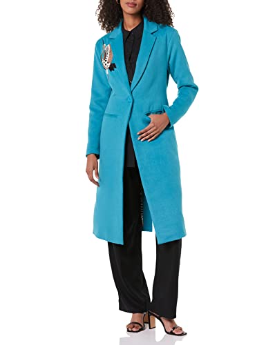 TEREA, Cappotto da donna Nina decorato con gru ricamata, turchese scuro / marrone argilla con motivo gru, S