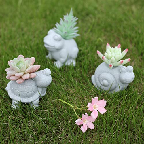 Design eccellente: 3 set, pianta artificiale animale di rana, tartaruga e lumaca, molto carina! La grande ciotola di cemento e la realistica succulenta artificiale sono di dimensioni adeguate per creare un'atmosfera rilassante