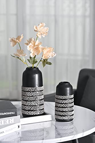 TERESA'S COLLECTIONS Vasi in Ceramica Vaso di Fiori Set di 2 vasi in Ceramica 19/25 cm Vaso per Fiori Piccolo Bianco e Nero Vaso da Tavolo Moderno Piante Vaso Decorazioneper la Festa della Mamma