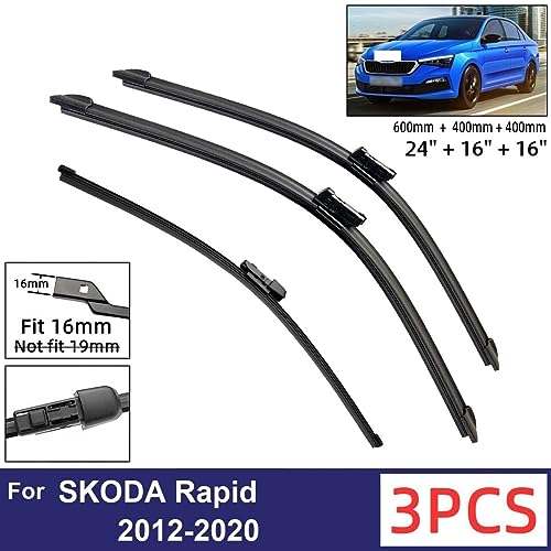 Tergicristallo for auto compatibile con SKODA Rapid 2012-2020 Tergicristallo anteriore posteriore for auto Tergicristalli in gomma morbida Parabrezza automatico 24"+16"+16" 2017 2018 2019 (Color: