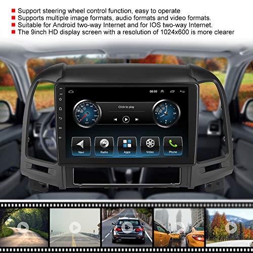 Terisass Navigazione GPS Lettore MP5 Multimedia Lettore Musicale Bluetooth Autoradio FM Radio per Android 9.1 Adatto per Santa Fe 06-12 9 Pollici 2D Pollici