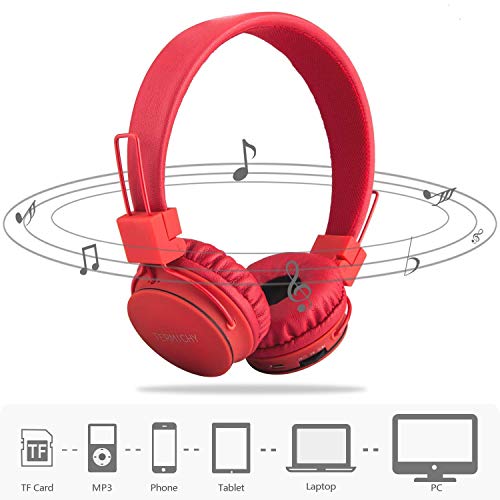 Termichy Cuffie Bluetooth Senza Fili per Bambini con Microfono + Controller Volume, Stereo Cuffie Auricolari Pieghevoli con condivisione Musica per Giochi Cellulari Smartphone Tablet PC (Rosso)
