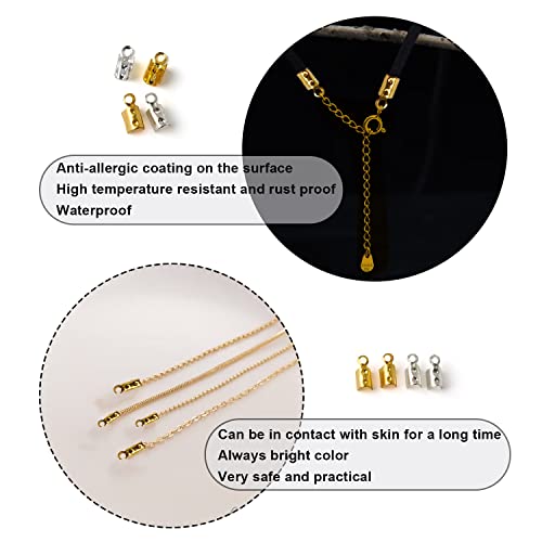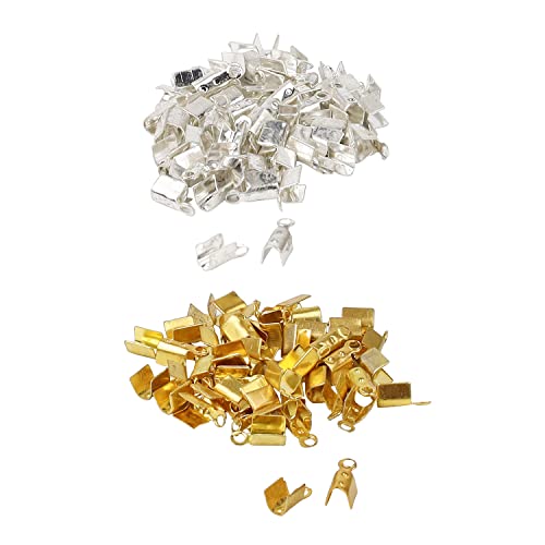 Terminali a Crimpare per Cavi, ZIJANG 100 Pezzi Terminali a Crimpare Kit, Tappi Terminali Piccoli, Terminali per Cappucci per la Creazione di Braccialetti Fai-Da-Te, 2 Colori (Argento, Oro)