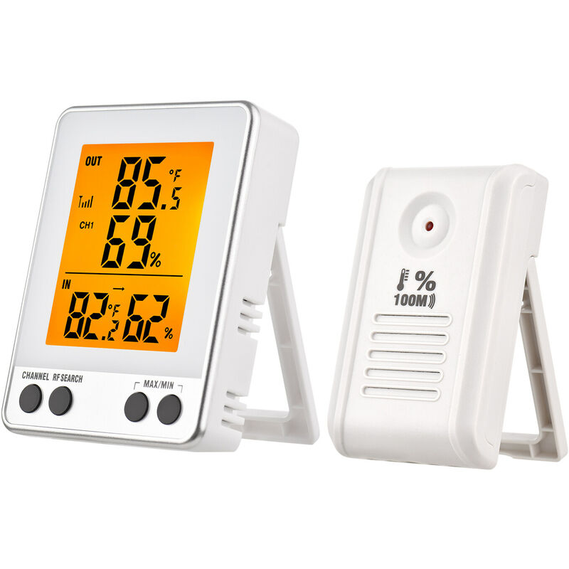 Termoigrometro digitale con sensore remoto con raggio di rilevamento di 100 m senza ostacoli, è preciso e può essere ampiamente utilizzato all'interno e all'esterno. Una scelta perfetta di monitoraggio della temperatura e dell'umidità per baby room, camera da letto, sala studio, ufficio, serra, cantina, magazzino, ecc. Nota:< /b> 1. Non posizionare il prodotto in un luogo con temperatura elevata, umidità, molta polvere o gas corrosivi per evitare danni ai componenti elettronici. 2. Le dimensioni e il colore possono essere leggermente diversi a causa della misurazione manuale e delle diverse condizioni di luce. Grazie per la comprensione. Specifiche: Colore: bianco Materiale: ABS Intervallo di temperatura interna: -10~60 ℃ (14~140 ℉) Intervallo di temperatura esterna: -50~70 ℃ (-58~158 ℉) Gamma di umidità: 20%-95% RH Unità di temperatura: ℃/ ℉ Selezionabile Risoluzione temperatura: 0,1 ℃/ 0,1 ℉ Risoluzione umidità: 1% Portata wireless: circa 100 m/328 piedi (distanza aperta senza