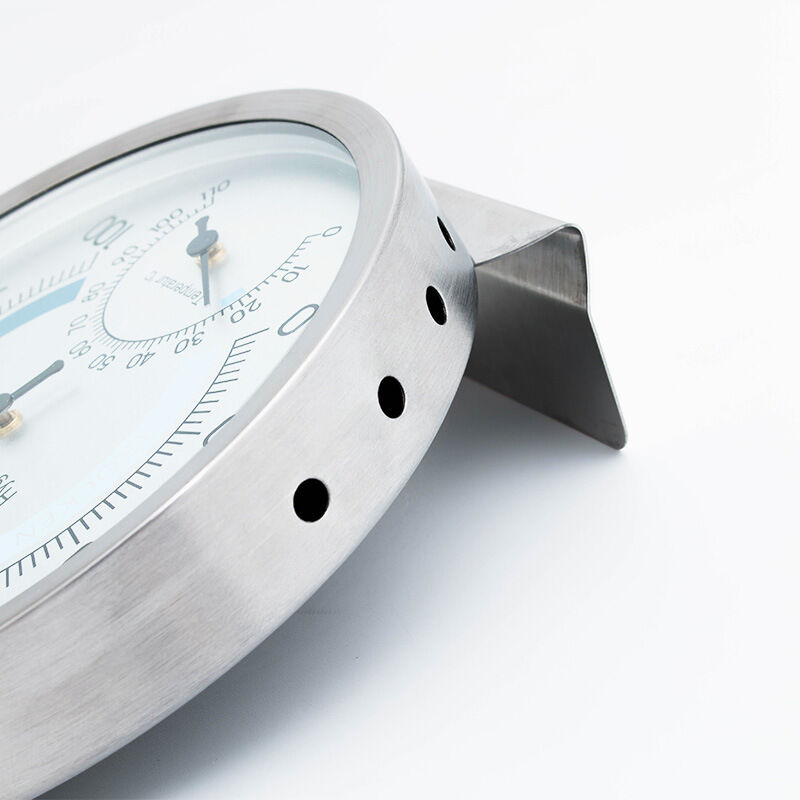Molto affidabile - Termometro-igrometro con valori misurati affidabili per il monitoraggio dell'umidità e della temperatura dell'aria per un clima interno confortevole e salutare - Particolarmente adatto per l'uso in soggiorni e uffici (non per la sauna). < p>Pronto per l'uso - Il dispositivo è calibrato in fabbrica e pronto per l'uso. Sono disponibili viti di calibrazione per la messa a punto. - Altissima qualità: l'intera cassa e il supporto rimovibile sono realizzati in acciaio inossidabile di alta qualità e il quadrante in alluminio di qualità è realizzato con molta cura: inossidabile, molto robusto, durevole, decorativo e offre un tocco elegante. Comodo display - L'umidità e la temperatura sono visualizzate in modo analogico e sono facilmente leggibili sull'ampio display da 12 cm - Le zone comfort sono contrassegnate da un colore e indicano quando è necessario effettuare l'aerazione o l'aumento dell'umidità dell'aria. Resistente: a differenza dei dispositivi digitali, questo