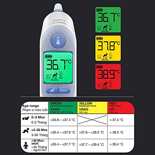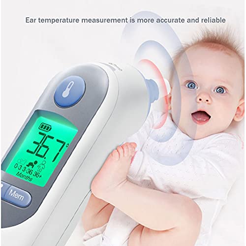 XMH Termometro Auricolare Digitale, Termometro A Infrarossi 3 in 1 Senza Contatto, Ampio Display con Funzione Luminosa, Indicatore di Febbre Che Cambia Colore, Memoria 9 Volte